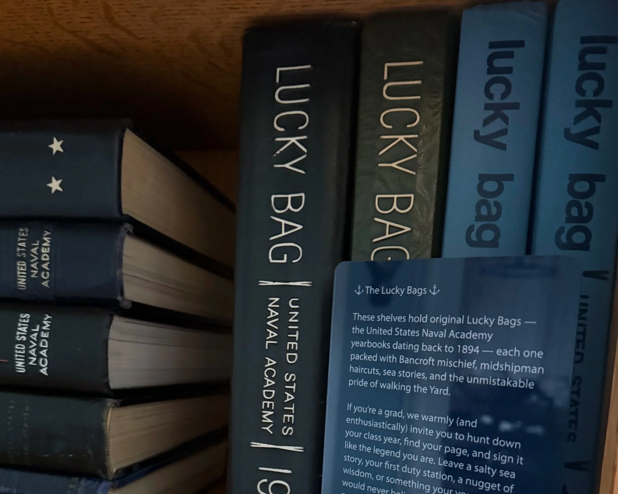 We are building a collection of Lucky Bags for guests to explore — an evolving library that reflects the history and spirit of the Naval Academy.